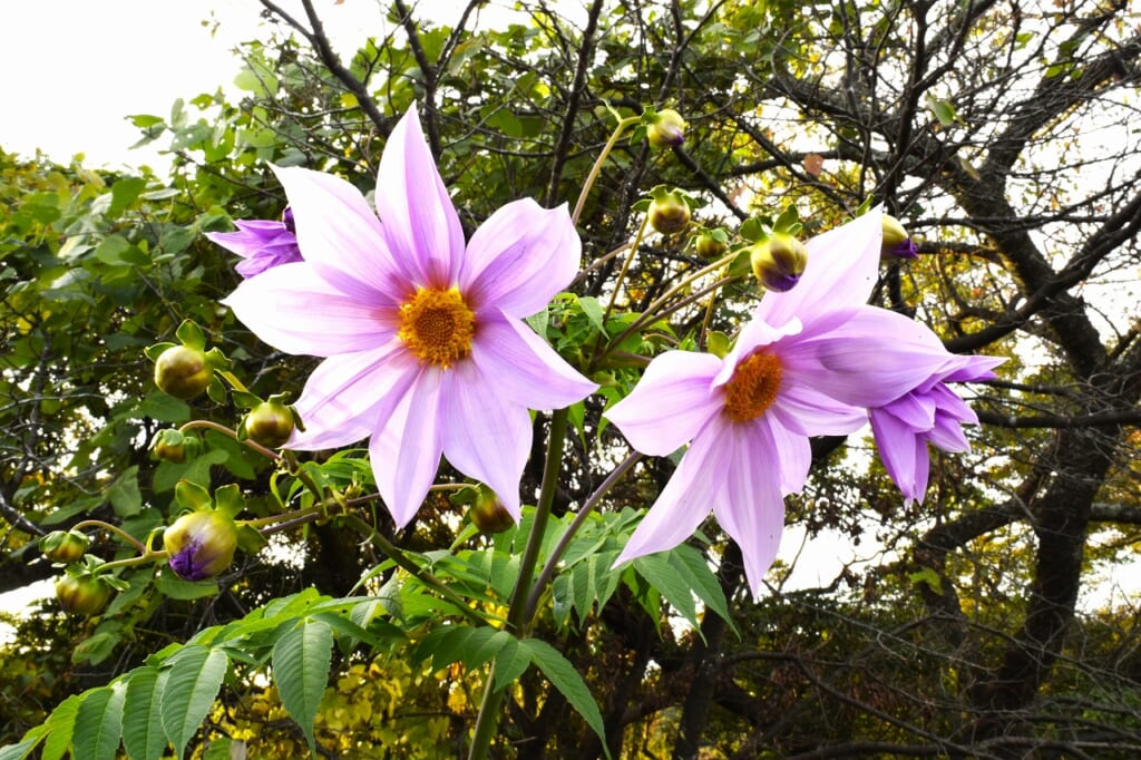 皇帝ダリアがコスモス園とハーブ園の管理棟横で開花しました。